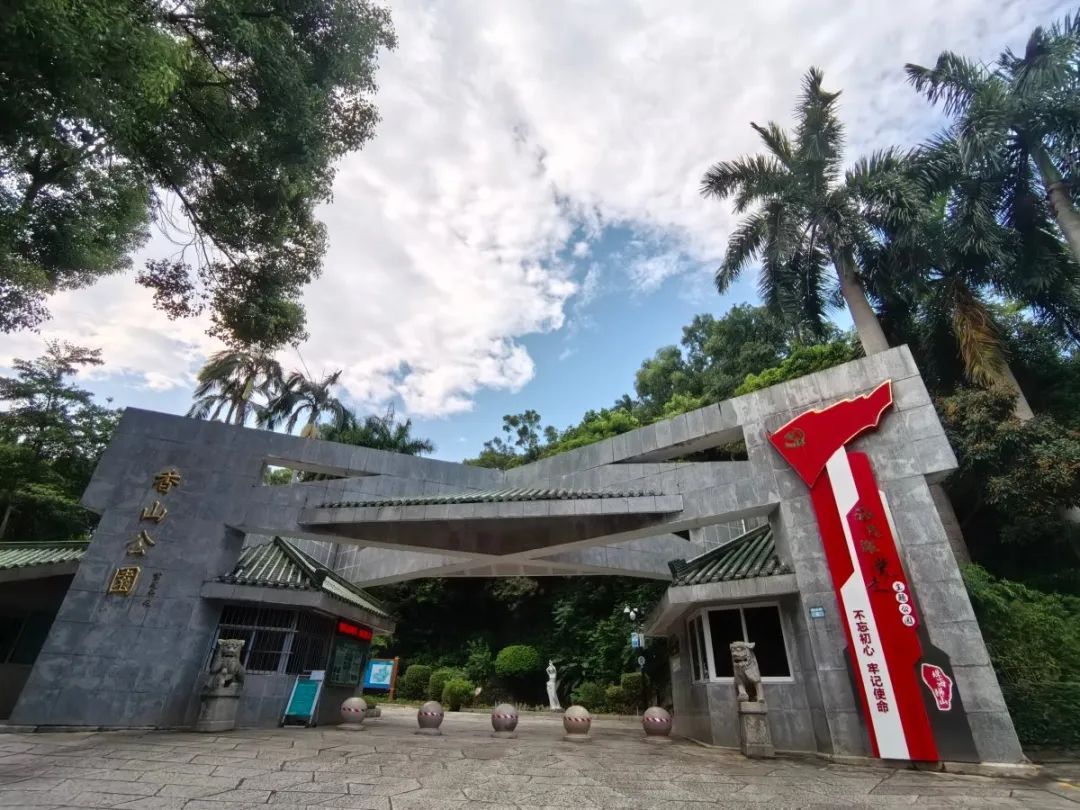 沿夏美路步行几分钟,便抵达同为《少林足球》取景地的香山公园。1989年建园的香山公园是珠海香洲区最早建成的公园之一。2021年启动的公园改造工程保留了原有生态基底,对旧有基础设施进行翻新改造,沿着香山公园蜿蜒绵长的山路而行,满眼都是成荫的绿树与灿烂的花草,在观景亭处凭栏远眺,老香洲和香炉湾美景尽收眼底。