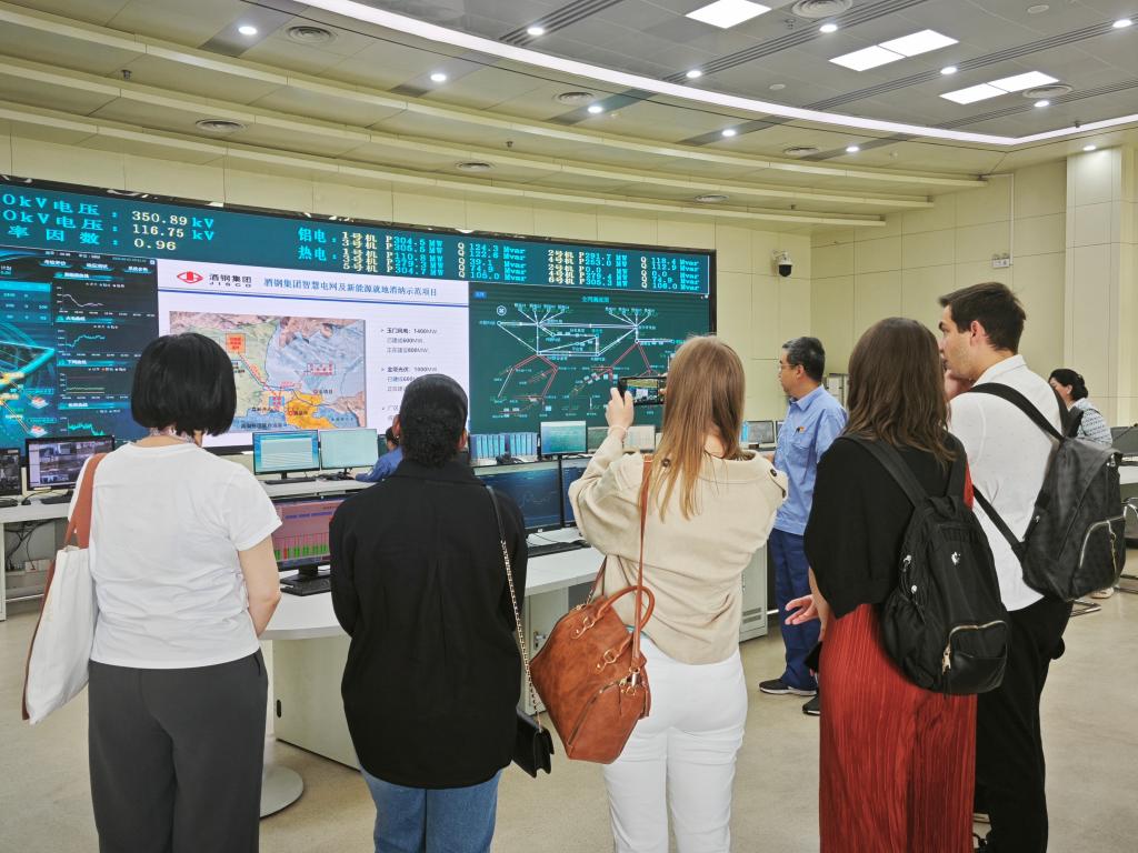 6月1日,第四届文明交流互鉴对话会嘉宾在听取酒钢集团智慧电网及新能源就地消纳示范项目情况介绍。新华社记者刘杨摄