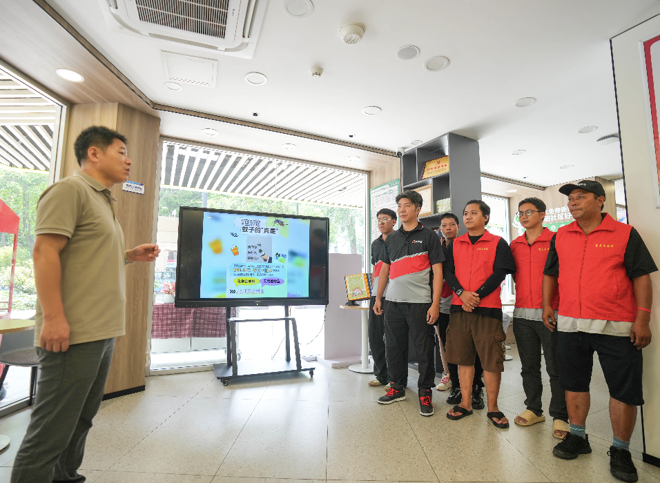 自广州市开展登革热、基孔肯雅热疫情防控以来,越秀区委社会工作部迅速向辖区行业党委、新兴领域党组织、党员、新就业群体等发出动员号召,区“小个专”党委迅速行动,联动农林街道组织外卖员、快递员等新就业群体支持社区防控。配送员们能够在工作中触及千家万户,及时发现社区隐患,在防疫信息宣传、消杀中灭蚊担当重任。哪栋楼有独居老年居民,需要多提醒几句防疫要点;哪个角落容易堆积杂物、产生积水,是蚊虫滋生的高危区,这些走街串巷的配送员们都了如指掌。